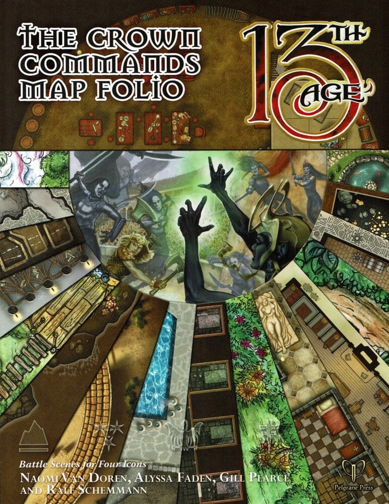 Os designers e artistas que criaram as artes do 13th Age – The Crown Commands Map Folio (2016) são Cal Moore em conjunto com Alyssa Faden, Melissa Gay.