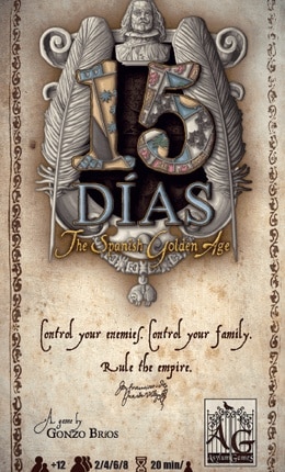Em 31 de março de 1621, o Rei Filipe III da Espanha, também conhecido como Filipe, o Piedoso, faleceu. Ele raramente tinha agido como um verdadeiro governante, e confiou toda a autoridade para o seu favorito, o Duque de Lerma. Quando o jovem príncipe Philip IV subiu ao trono, um novo concorrente chegou ao tribunal, o Conde de Olivares sedento de poder. Embora o Duque de Lerma tinha sido obrigado a deixar a corte, depois de cair em desgraça e ser acusado de corrupção massiva por seu próprio filho, sua família esperava manter o poder a qualquer custo… 15 Dias: The Spanish Golden Age está ambientado neste contexto de Backstabbing, traições e intrigas do palácio. Quem vai se tornar o novo “Valido”? Você trairia seu próprio sucessor para obter a graça do Rei? Tudo isso e muito mais espera por você em 15 Dias: The Spanish Golden Age, um jogo de cartas cheio de história e intriga, não arrependimento, traição e, acima de tudo, ambição. Dependência de Idioma Nenhuma Domínios Jogos Expert Mecânicas Gestão de Mão, Ordem de Fases Variável, Negociação Categorias Jogo de Cartas Temas História, Política