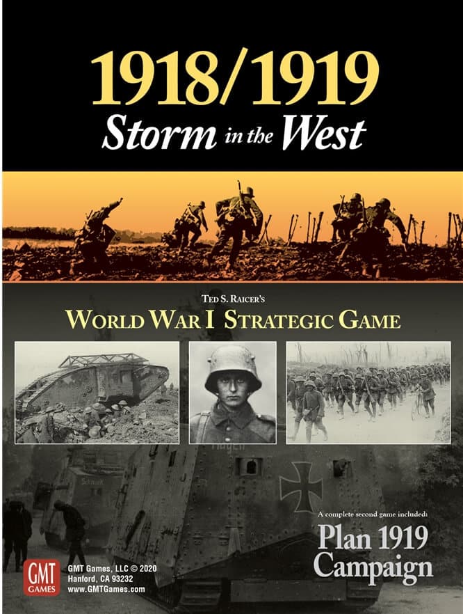 Esta nova versão em caixa da GMT de 1918/1919: Storm in the West é um sistema de dois jogadores que também funciona bem para jogar sozinho. As unidades são em sua maioria corps (divisões para os EUA, cujas unidades superdimensionadas eram quase do tamanho de corpos aliados), e incluem infantaria, tanques, cavalaria e apoio aéreo. Os alemães iniciam a campanha de 1918 com um grande número de Stosstruppen, treinados para superar o impasse das trincheiras nos três anos anteriores. Isso dá ao jogador alemão uma forte capacidade ofensiva na primeira metade do jogo. Mas essas “tropas de choque” são um bem desperdiçado, e se os Aliados sobreviverem aos golpes iniciais, um número crescente de soldados dos EUA e tanques aliados verá os alemães forçados a uma defesa desesperada no segundo tempo do jogo. Dependência de Idioma Extenso. Precisa de uma tradução quase completa para ser jogado. Domínios Jogos Expert Mecânicas Marcadores e Hexágonos, Rolagem de Dados, Simulação Categorias Jogo de Guerra Temas Guerra