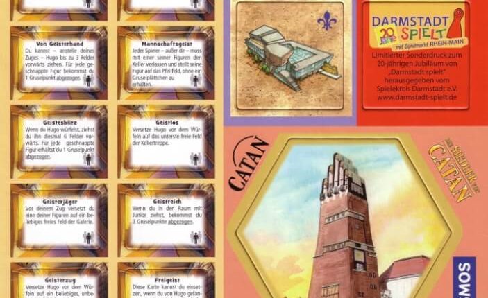 20 Jahre Darmstadt Spielt ou “20 anos de Darmstadt Plays” (tradução livre) é um conjunto de pequenos tiles promocionais em homenagem ao aniversário de 20 anos do evento anual Darmstadt Spielt que ocorre na cidade de Darmstadt, Alemanha. O evento acontece desde 1994 realizado pelo grupo alemão Spielekreis Darmstadt. O conjunto foi impresso em uma folha de tiles contendo mini expansões para cinco jogos populares: • Carcassonne • Hugo, das Schlossgespenst (Midnight Party) • Die Siedler von Catan (The Settlers of Catan) • Village Port • Zooloretto A folha foi vendida durante o evento Darmstadt plays, de 15/11 a 16/11/2014, e antes também na feira Spiel na cidade de Essen, de 16/10 a 19/10/2014. Dependência de Idioma Nenhuma Domínios Jogos Expert Mecânicas Gestão de Mão, Alocação de Trabalhadores, Colecionar Componentes, Colocação de Peças, Construção de Rotas, Controle/Influência de Área, Force sua sorte, Movimento Ponto-a-Ponto, Pegar e Entregar, Rolagem de Dados, Rolar e Mover, Tabuleiro Modular, Negociação Categorias Expansão ou Suplemento Temas Animais, Aventura, Medieval, Esportes, Economia / Produção, Transportes