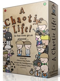 A Chaotic Life é um jogo de cartas com muita história e algumas más decisões! Faça a estratégia de sua vida – se adapte enquanto seus oponentes tentam arruiná-la! Trabalhe a favor ou contra de seus oponente para criar um bebê através dos seus 7 estágios da vida – ambos escolhendo suas ações e aceitando as consequências – para finalmente viver uma vida maravilhosa (ou terrível)! Jogadores vão passar os turnos puxando e jogando cartas. Isso representarão eventos na vida do bebê (futuramente adulto), e poderão gerar contadores de “Happiness” (Felicidade) ou “Sadness” (Tristeza) para o jogador. O resultado da carta é afetado pelas cartas jogadas anteriormente. No final do jogo, o jogador que coletou o maior número de contadores de “Happiness” ou “Sadness” (dependendo do objetivo selecionado no inicio do jogo) ganha o jogo. Dependência de Idioma Moderado, precisa de uma planilha traduzida ou cartas traduzidas. Domínios Jogos Família Mecânicas Gestão de Mão Categorias Jogo de Cartas Temas Humor