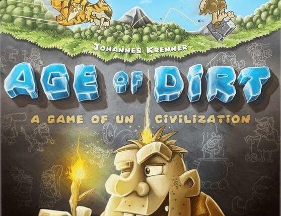Em Age of Dirt: A Game of Uncivilization, você controla uma pequena tribo no início da civilização, enviando seus trabalhadores na esperança de coletar os recursos necessários para crescer e prosperar. Infelizmente, eles nem sempre ouvem. Antes de coletar recursos, você tem que soltar todos os trabalhadores no espaço desse recurso através da “Passagem”, uma torre tridimensional em forma de montanha, onde eles vão cair e ficar presos, deixando apenas alguns para sair e realmente coletar esse recurso. O resto terá que esperar para ser solto em um turno futuro. Então, se você enviar um trabalhador para a floresta para coletar madeira e bagas, eles podem acabar nas montanhas coletando ervas, nas planícies caçando por pêlo, ou na “Tenda do Amor” fazendo … a sua população maior. Eles também podem trazer alguns predadores da passagem – ou não voltar. Os jogadores usam os recursos que seus trabalhadores acabam para armar seus trabalhadores com lanças e tambores, para construir uma caverna maior ou para criar uma invenção, que ganha pontos de vitória para sua tribo. O primeiro jogador a ter 10 pontos de vitória ganha! Dependência de Idioma Extenso. Precisa de uma tradução quase completa para ser jogado. Domínios Jogos Família Mecânicas Alocação de Trabalhadores Categorias Temas Civilização, Pré-Histórico