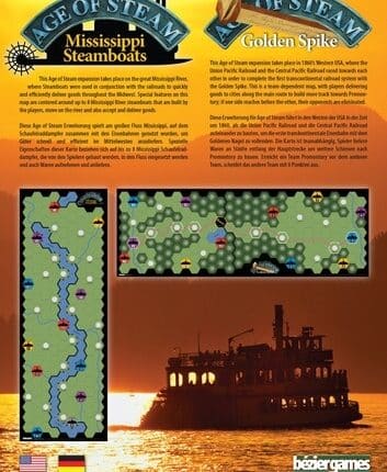 A descrição do Age of Steam Expansion: Mississippi Steamboats / Golden Spike oficial é: