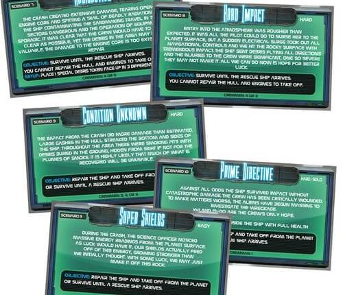 Esses cinco cenários adicionam novas situações para a tripulação do Pioneer. – Cenário 7 é o Radioativo que afeta bugs e shields; – Cenário 8 é o Impacto árduo que afeta toda a tripulação logo no início do jogo; – Cenário 9 é o Condição desconhecida que força os jogadores a consertarem a nave, mas também apresenta as fichas “especiais” do jogo base; – Cenário 10 é a Diretiva primária e oferece um jogo solo; – Cenário 11 é o Super escudos que faz uso das fichas de super escudo e foi designado para ser um cenário mais fácil através da ajuda do escudo extra. Dependência de Idioma Extenso. Precisa de uma tradução quase completa para ser jogado. Domínios Jogos Expert Mecânicas Cooperativo Categorias Expansão ou Suplemento Temas Ficção Científica