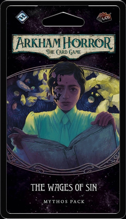 A descrição do Arkham Horror: The Card Game – The Wages of Sin: Mythos Pack oficial é: