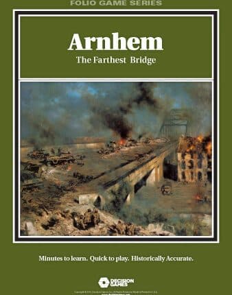 Em setembro de 1944, a Operação Market-Garden foi planejada para abrir um caminho direto para os exércitos aliados para contornar o Muro Oeste e ameaçar o coração industrial do Ruhr, na Alemanha. O objetivo das forças aerotransportadas britânicas, americanas e polonesas era assaltar e capturar pontes chaves ao longo da estrada principal que conduz através da Holanda, e a ponte de Arnhem que era a mais distante de todas. Infelizmente, os Aliados tinham subestimado as forças alemãs na área; assim, quando as forças aerotransportadas pousaram, encontraram-se dispersadas em meio a uma divisão Panzer SS. As várias pontes tornaram-se o fulcro de toda a operação para ambos os lados. Arnhem utiliza o sistema de combate Fire & Movement que é projetado para que os jogadores possam aumentar suas unidades com “fogo de apoio” durante o curso dos turnos. Desde morteiros até artilharia auto-propulsada, as unidades podem receber recursos de apoio para engajar posições inimigas e formações, permitindo que o combate se desenvolva em todos os níveis. Um único batalhão de reconhecimento por exemplo – talvez apoiado por tanques – poderia ser encarregado de atacar um batalhão de paraquedistas inimigo solitário defendendo uma zona de pouso. Conforme o ataque começa, o batalhão de reconhecimento pode ser atacado por caças-bombardeiros inimigos. Mais apoio será necessário para tomar a zona de pouso, mas os recursos são limitados. Em Arnhem, o desenho de atrito da nova Tabela de Resultados de Combate simula a verdadeira natureza das batalhas na Europa. As unidades são tipicamente formações bilaterais que podem incorrer em baixas, replicando com precisão as realidades de combate e as altas perdas sofridas por ambos os lados durante a luta real para Arnhem. Ganhar a batalha é, portanto, uma questão de manobra, poder de fogo e gestão de recursos. Dependência de Idioma Nenhuma Domínios Jogos Expert Mecânicas Marcadores e Hexágonos, Simulação Categorias Jogo de Guerra Temas Guerra