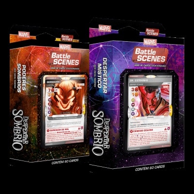 Despertar Sombrio traz para o Battle Scenes os magos mais poderosos da Marvel e as Criaturas Sombrias que habitam os cantos mais escuros do universo diretamente para a mesa de jogo. A Coleção principal apresenta 100 cards inéditos e 12 reimpressões em adição à subcoleção de decks “Despertar Místico”, contando com a presença do Mago Supremo Doutor Estranho e “Poderes Sombrios”, trazendo, pela primeira vez, o Demônio de fogo, Dormammu, os jogadores terão novas experiências de batalhas. Editora Nacional Copag Dependência de Idioma Extenso. Precisa de uma tradução quase completa para ser jogado. Domínios Jogos Expert Mecânicas Construção de Baralho/Peças, Gestão de Mão, Jogadores com Diferentes Habilidades Categorias Colecionável, Expansão ou Suplemento, Jogo de Cartas Temas Luta / Artes Marciais, Quadrinhos