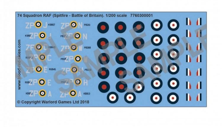 A editora responsável pela distribuição do Blood Red Skies: Decal Sheet – British 74 Squadron RAF Spitfire (2018) foi a Warlord Games no ano de 2018.