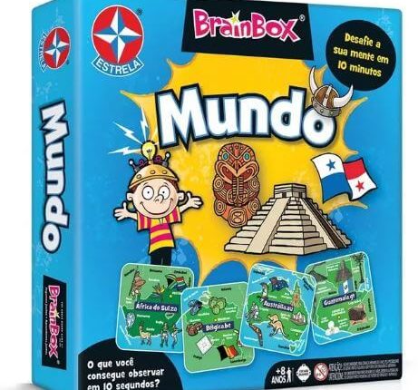 Lembrando que o jogo de tabuleiro Brainbox Mundo é um jogo pensado para pessoas com idade a partir de 8 anos e é indicado para 2 a 10 jogadores, além de ter sessões de jogo que duram em média 10 minutos.