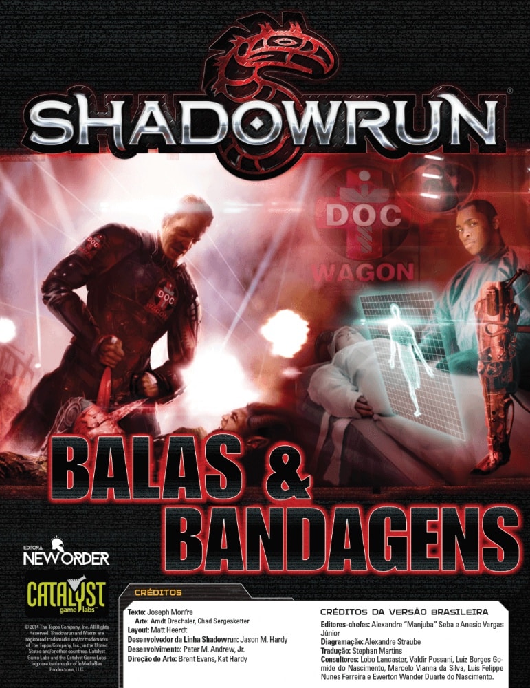 A editora responsável pela distribuição do Shadowrun: Balas e Bandagens (2014) foi a New Order Editora, Catalyst Game Labs no ano de 2014.