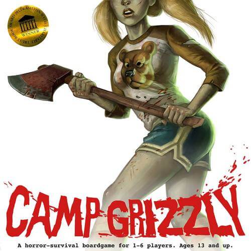 Camp Grizzly é um jogo semi-cooperativo de sobrevivência e horror para 1-6 jogadores. O ano é 1979, os jogadores assumem os papéis de Monitores do Acampamento que estão sendo perseguidos por um labirinto de cabines e trilhas por “Otis”, um assassino com um fetiche homicida insalubre. Trabalhando em conjunto, os Monitores exploram as terras do acampamento enquanto procura por uma combinação de objetivos que podem desencadear um dos quatro finais de jogo diferentes. Aqueles que sobrevivem ao final ganham o jogo! Dependência de Idioma Moderado, precisa de uma planilha traduzida ou cartas traduzidas. Domínios Jogos Expert Mecânicas Cooperativo, Eliminação de Jogadores Categorias Temas Adulto, Humor, Luta / Artes Marciais, Horror