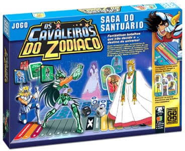 Neste jogo os cavaleiros de bronze precisam salvar a deusa Athena. Durante o percurso pelas casas do Zodíaco, Seya, Shiryu, Ikki, Hyoga e Shun desenvolverão seus golpes, sua força e elevarão seu Cosmo, para enfrentar Cavaleiros Negros, de Prata e de Ouro. Por fim encontrarão o Mestre do Santuário, com quem travarão um duelo de vida ou morte! Prepare-se para estas fantásticas batalhas que irão decidir o destino do universo! Editora Nacional Grow Jogos e Brinquedos Dependência de Idioma Pouco texto, facilmente memorizavel. Domínios Jogos Família Mecânicas Campanha/ Batalhas Dirigidas por Cartas, Rolagem de Dados, Rolar e Mover, Seleção de Cartas Categorias Jogo de Dados Temas Luta / Artes Marciais, Anime / Manga