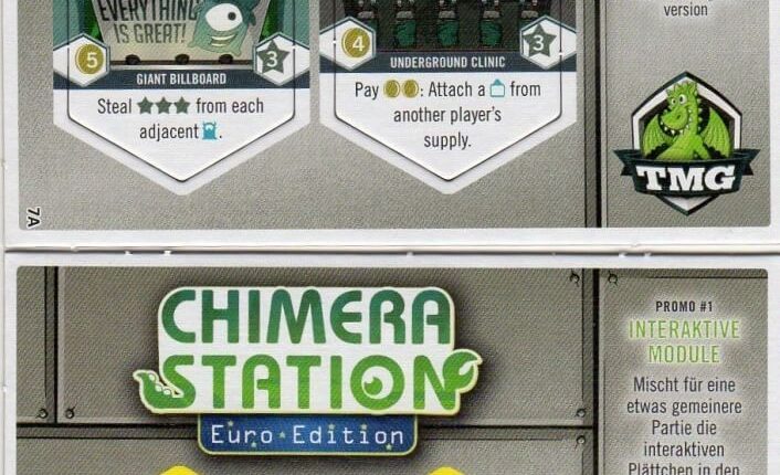 Mini expansão para o jogo Chimera Station contida no Brettspiel Adventskalender 2017. Dependência de Idioma Moderado, precisa de uma planilha traduzida ou cartas traduzidas. Domínios Jogos Expert Mecânicas Alocação de Trabalhadores, Jogadores com Diferentes Habilidades Categorias Expansão ou Suplemento Temas Ficção Científica