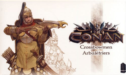 Poderosas hordas de ataque a distância, os Crossbowmen possibilitarão mais variedade em jogos e vêm com a sua própria missão, bem como as diretrizes para usá-los em outras. Esta expansão surgiu em projeto do Kick Starter. É parte dos “ADD ON’s” exclusivos do KS para o jogo. O rei e seus aliados avançaram para o oeste, no comando de cinquenta mil homens – cavaleiros em armaduras brilhantes com suas flâmulas acenando por cima de seus elmos, lanceiros em capacetes e cotas de malha de aço, besteiros em jaquetas de couro. Eles atravessaram a fronteira, tomaram um castelo de fronteira e queimaram três aldeias da montanha, e então, no vale do Valkia, dez milhas a oeste da fronteira, encontraram as hostes de Conan, rei da Aquilônia – quarenta e cinco mil cavaleiros, arqueiros e homens de armas, símbolo da força e bravura Aquiloniana. — Robert E. Howard, A Hora do Dragão (Conan, O Conquistador) Dependência de Idioma Pouco texto, facilmente memorizavel. Domínios Jogos Expert Mecânicas Cooperativo, Eliminação de Jogadores, Jogadores com Diferentes Habilidades, Movimento de Área, Ordem de Fases Variável, Rolagem de Dados Categorias Expansão ou Suplemento, Miniaturas Temas Aventura, Luta / Artes Marciais, Quadrinhos, Fantasia