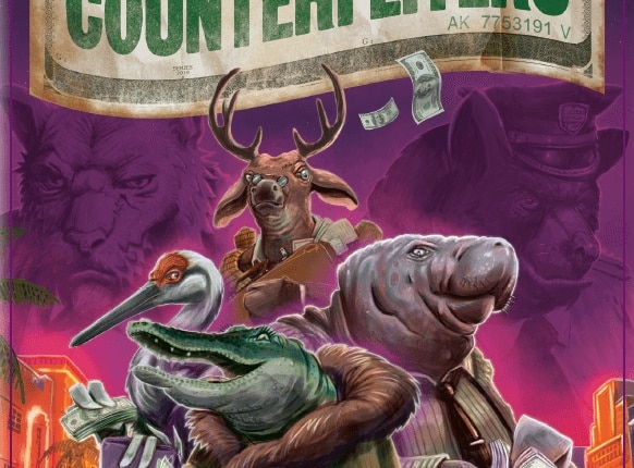 Em Counterfeiters (Falsificadores), os jogadores assumem o papel-título, imprimindo notas falsas e trocando-as por coisas reais. O padrinho pode ajudá-los a evitar a polícia, mas sua proteção tem um custo. O jogo termina quando a polícia completa suas investigações sobre a indústria de falsificação, e o jogador com o dinheiro mais real (isto é, não falsificado) ganha! O jogo está situado em Miami, Flórida, e permite que os jogadores compitam para ser o melhor falsificador. Os jogadores assumem o papel de figuras antropomórficas e, apesar de serem protegidos pelo padrinho, eles tentam não pagar muito pela proteção oferecida. Enquanto isso, a polícia está investigando a indústria de falsificação, tornando inúteis dinheiro falsificado de baixa qualidade. Cada jogador tem três peões animais e coloca-os em ordem de turno, executando imediatamente a ação associada. Os jogadores podem comprar cartões de componentes no mercado negro, melhorando suas oportunidades tanto para imprimir dinheiro falso quanto para processá-lo. É claro, os jogadores trocarão seu dinheiro falso por dinheiro real e tentarão mantê-lo longe do padrinho, colocando-o em uma conta no exterior… Dependência de Idioma Nenhuma Domínios Jogos Família Mecânicas Alocação de Trabalhadores Categorias Jogo de Cartas Temas Animais, Policial