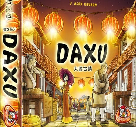 Em Daxu, os jogadores recolhem conjuntos de cartas de seis diferentes tipos de lojas: padaria, loja de vinho de arroz, madeireira, fabricante de cestas, comerciante de seda e casa de chá. A cada rodada, várias cartas são viradas e os jogadores decidem se querem as cartas para si ou se eles querem dar as cartas para seu oponente. Cartas obtidas entram em sua coleção pessoal, e algumas destas cartas fornecem (ou fazem você perder) pontos de reputação. Se você se concentrar demais em um tipo de loja, seus clientes ficarão insatisfeitos e seu oponente ganhará pontos em vez de você! No final do jogo, os jogadores marcam pontos com base em quem possuir as maiorias das lojas. Segurando uma maioria por apenas algumas cartas você ganha pontos, mas a partir de um certo número, a maioria oferece pontos para o seu adversário! Ganha quem recolher a maioria dos pontos de maiorias e pontos de reputação. Dependência de Idioma Nenhuma Domínios Jogos Família Mecânicas Colecionar Componentes, Leilão Categorias Jogo de Cartas Temas