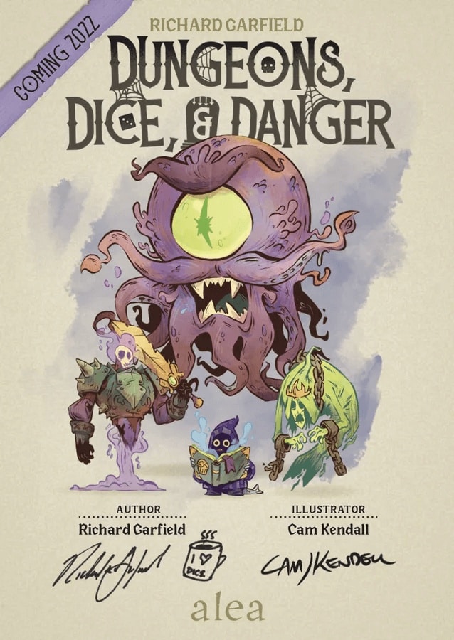 Os designers e artistas que criaram as artes do Dungeons, Dice & Danger (2022) são Richard Garfield em conjunto com Cam Kendell.