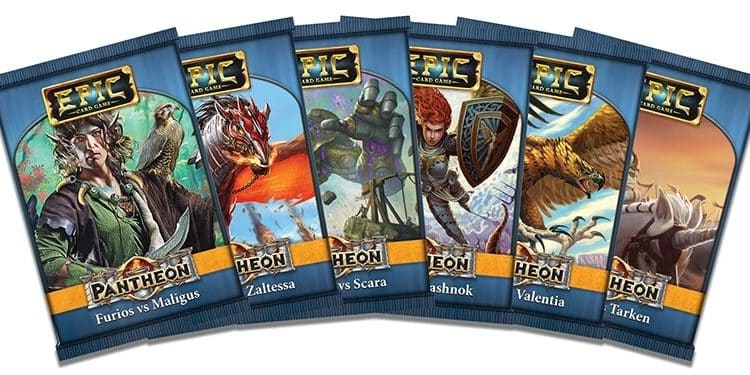 Epic Card Game: Pantheon é uma expansão para o Epic Card Game que é embalado em seis pacotes de reforço não aleatórios: 2 Pantheon “Elder God” packs: * Furios vs Maligus * Helena vs Zaltessa 2 Pantheon “God” packs: *Angeline vs Scara *Gareth vs Lashnok 2 Pantheon “Demigod” packs: *Shadya vs Valentia *Riksis vs Tarken Pantheon apresenta um novo tipo de cartas, as Divindades (Deity). São 12 tipos de Divindades diferentes: 4 Elder Gods, 4 Gods e 4 Demigods. As Divindades trazem uma nova maneira de jogar: – Usando uma carta de Divindade, ela começa o jogo aberta e perto de seu deck. Esta carta não pode ser derrotada, banida, colocada em sua mão, ou removida do jogo. – Jogue usando os decklists sugeridos na parte de trás do manual, ou jogue em qualquer formato Epic usando apenas cartas do alinhamento de sua Divindade. – No jogo com “Elder Gods” você começa com 90 pontos de vida e 6 cartas na mão; no jogo com “Gods” você começa com 45 pontos de vida; e no jogo com “Demigods” você começa com os 30 pontos de vida de sempre. Cada pacote de reforço contém doze cartas de jogo novas, 2 cartas marcador/deity e 1 carta de marcação de dois lados. Dependência de Idioma Extenso. Precisa de uma tradução quase completa para ser jogado. Domínios Jogos Família Mecânicas Gestão de Mão, Seleção de Cartas, Toma essa Categorias Expansão ou Suplemento, Jogo de Cartas Temas Luta / Artes Marciais, Fantasia