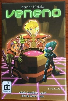 Lembrando que o jogo de tabuleiro Veneno é um jogo pensado para pessoas com idade a partir de 8 anos e é indicado para 3 a 6 jogadores, além de ter sessões de jogo que duram em média 30 minutos.