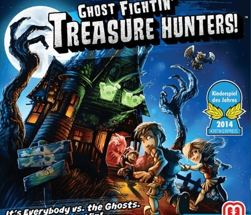 Em uma casa escura e sombria, cada som envia um calafrio através de seus ossos. Uma porta se abre – alguém lá? Você ouve sussurros, mas ninguém responde quando você pergunta. Seus olhos e ouvidos podem enganá-lo, mas o cabelo em seu pescoço lhe diz o que você já sabe: há fantasmas aqui – e não apenas um… é uma legião. Em Ghost Fightin’ Treasure Hunters, também conhecidos como Geister, Geister, Schatzsuchmeister!, quatro intrépidos caçadores de tesouro estão em uma busca, procurando preciosas jóias escondidas, mas os fantasmas nesta casa não desistem de seus bens facilmente. Enquanto seus números macabros crescem, os caçadores de tesouros devem trabalhar juntos para adquirir todas as oito jóias e escapar da casa antes que ela seja completamente assombrada ou então enfrentarão sua própria morte horrível. Os jogadores lançam dados para determinar quantos espaços se movem neste turno e se um novo fantasma é adicionado ao tabuleiro. Os jogadores podem mover-se o número de espaços mostrados no dado. Se eles finalizam o seu movimento em um espaço com um tesouro, eles podem pegá-lo e colocá-lo em sua mochila. Se eles finalizam o seu movimento em um espaço com um fantasma, eles lutam contra o fantasma, rolando um dado de luta. Se eles rolam o símbolo correspondente, eles removem o fantasma do tabuleiro de jogo. Se os jogadores têm de adicionar um terceiro fantasma em uma sala, ele se transforma em uma assombração. A assombração requer pelo menos duas pessoas no quarto para tentar uma luta contra ela. Os jogadores ganham se eles obtiverem todos os oito tesouros e toda a sua equipe fora de casa; eles perdem se todas as seis assombrações estiverem no tabuleiro. Dependência de Idioma Pouco texto, facilmente memorizavel. Domínios Jogos Família Mecânicas Cooperativo, Rolar e Mover Categorias Temas Aventura, Fantasia