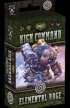 Além da embalagem do Hordes: High Command – Elemental Rage, também estão presentes no conteúdo do jogo os seguintes componentes: