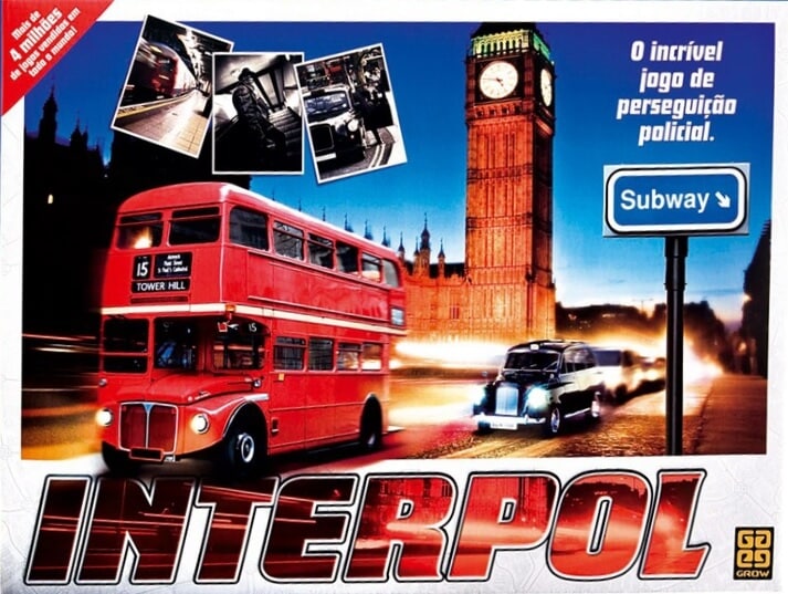 Interpol é um emocionante jogo de perseguição. Um dos jogadores assume o papel de Mister X e foge pelas ruas de Londres, usando táxi, ônibus ou metrô. Os outros jogadores se juntam para tentar pegá-lo, mas a tarefa não é fácil. Mister X só é visto de vez em quando e seu destino é sempre incerto. LUDOSTORE R$ 573,00 (no boleto) Comprar Editora Nacional Grow Jogos e Brinquedos Status Nacional Lançado Dependência de Idioma Nenhuma Domínios Jogos Expert Mecânicas Cerco de Área, Movimento Ponto-a-Ponto, Jogo em Equipe, Posicionamento Secreto, Blefe, Dedução Categorias Temas Transportes