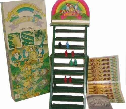 Brinquedo antigo fabricado na Década de 80. Objetivo: 16 gnomos que devem se equilibrar na escada e subir as escadas. O jogador que colocar pelo menos 2 de seus 4 gnomos no topo da escada vence o jogo. Editora Nacional Mimo Dependência de Idioma Nenhuma Domínios Jogos Infantis Mecânicas Colocação de Peças Categorias Temas Fantasia
