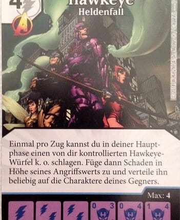 A descrição do Marvel Dice Masters: Avengers vs. X-Men – Hawkeye: Avengers Disassembled oficial é:
