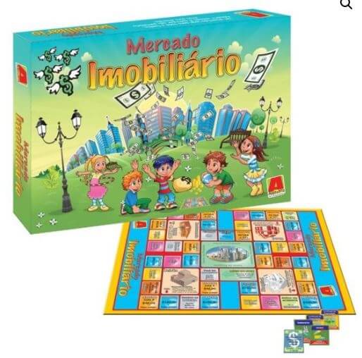 Lembrando que o jogo de tabuleiro Mercado Imobiliário é um jogo pensado para pessoas com idade a partir de 7 anos e é indicado para 2 a 6 jogadores, além de ter sessões de jogo que duram em média 01 hora.