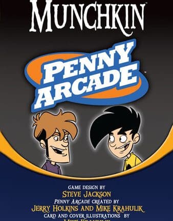 Este conjunto contém 15 cartas (11 Portas e 4 Tesouros) para Munchkin, desenhados por Mike Krahulik, o artista do webcomic Penny Arcade. As cartas tem referência aos personagens e situações do Penny Arcade e não são muito engraçados, se você não estiver familiarizado com o webcomic. A mecânica das cartas, no entanto, são diferentes do normal, adicionando uma variedade para qualquer jogo Munchkin. Dependência de Idioma Moderado, precisa de uma planilha traduzida ou cartas traduzidas. Domínios Jogos Família Mecânicas Gestão de Mão, Jogadores com Diferentes Habilidades, Rolagem de Dados Categorias Expansão ou Suplemento, Jogo de Cartas Temas Humor, Luta / Artes Marciais, Quadrinhos