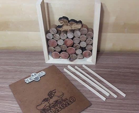 O que poucos falam sobre Não Acorde o Dragão, é que ele tem em si diversas mecânicas, como: 21 peças cilíndricas de madeira tamanho pequeno 06 peças cilíndricas de madeira tamanho grande 4 palitos para mover as peças 01 dragão de madeira Caixa estojo de madeira que serve de tabuleiro Sleeves Sem informações – o que enriquece a dinâmica entre os jogadores, oferecendo experiências únicas e ótimas lembranças, principalmente para aqueles com idade de 5 anos, pois são justamente o público alvo.