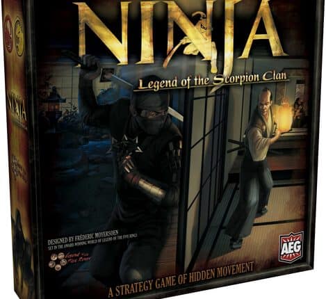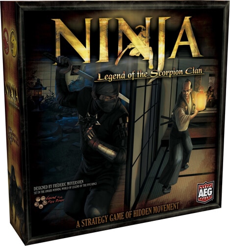 Ninja: Legend of the Scorpion Clan é um jogo de tabuleiro da Alderac Entertainment Group. Projetado pelo veterano autor Fréderic Moyersoen, Ninja tem funcionalidades de um jogo rápido, com movimento oculto, informação limitada e blefe. Ninja: Legend of the Scorpion Clan traz a profundidade e detalhe da fantasia do mundo de L5R (legend of the Five Rings) para o tabuleiro de uma maneira rápida, emocionante e acessível. Dependência de Idioma Moderado, precisa de uma planilha traduzida ou cartas traduzidas. Domínios Jogos Expert Mecânicas Movimento de Área, Posicionamento Secreto, Dedução Categorias Temas Fantasia
