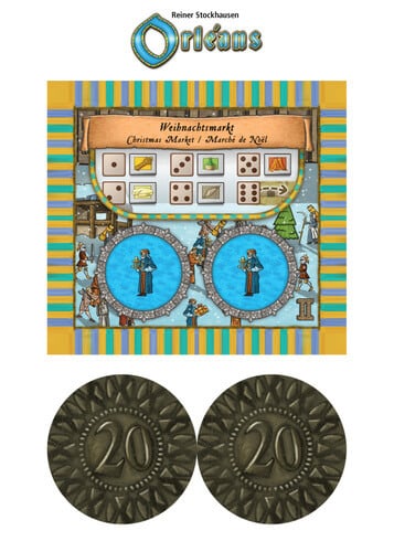 Além da embalagem do Orléans: Christmas Market, também estão presentes no conteúdo do jogo os seguintes componentes: