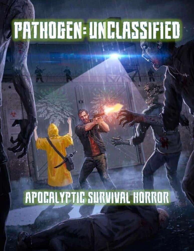Pathogen: Unclassified é um jogo de RPG apocalíptico de horror de sobrevivência. É definido três anos depois que um surto parasitário global assumiu, alterando a mente das pessoas. Ele atacou rápido e sem misericórdia. Com o tempo, os sobreviventes não infectados (aproximadamente 9% da população mundial) perceberam que nem todos os infectados eram iguais. Eles ainda estavam vivos, mas o parasita está no controle do corpo do hospedeiro. Sistema Pathogen: Unclassified Dependência de Idioma Não jogável em outra língua Domínios RPG Mecânicas Narração de Histórias, Papel e Caneta, Rolagem de Dados, RPG Categorias Temas Ficção Científica, Horror