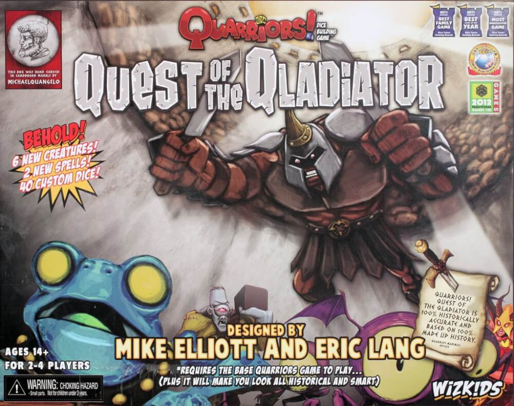 A editora responsável pela distribuição do Quarriors! Quest of the Qladiator (2012) foi a WizKids Games, Arclight no ano de 2012.