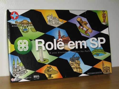 Rolê em SP (“Volta em São Paulo”) é um jogo de trivia simples sobre os pontos de referência da cidade de São Paulo (maior cidade do Brasil). Este jogo foi dado como um presente por um shopping center localizado naquela cidade. Você é um investidor e, com cotas de patrocínio, vai ajudar a preservar a cidade de São Paulo e seus Patrimônios. Objetivo: Preservar, com cotas de patrocínio, os principais pontos da cidade de São Paulo e vencer o jogo por meio de uma destas duas opções: Opção 1 – ser o primeiro a possuir ao menos uma cota patrocinada em cada região de São Paulo. Opção 2 – Ao fim do jogo, possuir o maior número de cotas de patrocínio. Editora Nacional Estrela Dependência de Idioma Extenso. Precisa de uma tradução quase completa para ser jogado. Domínios Jogos Família Mecânicas Cerco de Área, Negociação, Posicionamento Secreto Categorias Trivia Temas Aventura, Cultura Brasileira