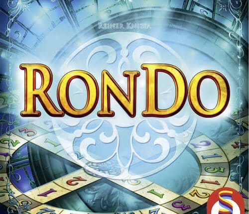 No jogo de estratégia abstrato Rondo, os jogadores tentam marcar tantos pontos quanto possível, colocando fichas em espaços numerados no tabuleiro de jogo, com o tabuleiro composto de dois anéis concêntricos de espaços numerados e vários raios que ligam estes anéis e o centro do tabuleiro. (O tabuleiro de jogo é dupla face, com diferentes valores de cada lado.) Os números vêm em cinco cores, e os jogadores começam o jogo pegando dois tokens (também em cinco cores) de um saco e colocando em um rack para, desse modo, esconder a cor de suas fichas dos outros jogadores. Dependência de Idioma Nenhuma Domínios Jogos Família Mecânicas Colecionar Componentes, Colocação de Peças Categorias Estratégia Abstrata Temas