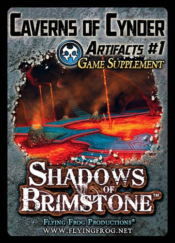 A editora responsável pela distribuição do Shadows of Brimstone: Caverns of Cynder Artifacts #1 Game Supplement (2015) foi a Flying Frog Productions no ano de 2015.