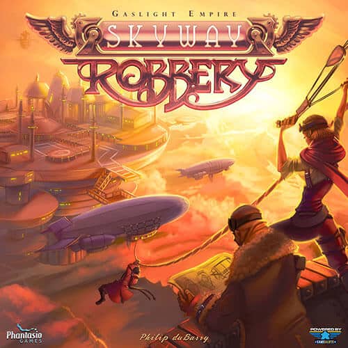 Com um dirigível gigante viajando para vários locais distantes, gangues rivais competem para efetuar assaltos ousados. Seu trabalho consiste em recrutar vários criminosos qualificados para participar de sua gangue enquanto você pretende derrubar locais fortificados e roubar o tesouro guardado lá dentro. Você também pode concluir trabalhos menores no próprio dirigível à medida que viaja por todo o globo. Situado em um mundo steampunk, Skyway Robbery oferece alta aventura e astúcia, dirigido por cartas. A vez de um jogador consiste em selecionar três cartas de ação e determinar a sua ordem em segredo. Uma vez que todos os jogadores selecionarem suas três ações, as cartas são reveladas e resolvidas, cada uma por vez. A maioria das ações permitirá aos jogadores comprar novas cartas (contratar membros de gangues e comprar equipamentos) de áreas no tabuleiro ou se envolver em uma ilegal, mas lucrativa, atividade. Quem ganhar mais pontos de reputação no final do jogo é o vencedor. Dependência de Idioma Pouco texto, facilmente memorizavel. Domínios Jogos Expert Mecânicas Gestão de Mão, Colecionar Componentes, Construção de Baralho/Peças, Jogadores com Diferentes Habilidades, Ordem de Fases Variável Categorias Temas Aventura, Transportes