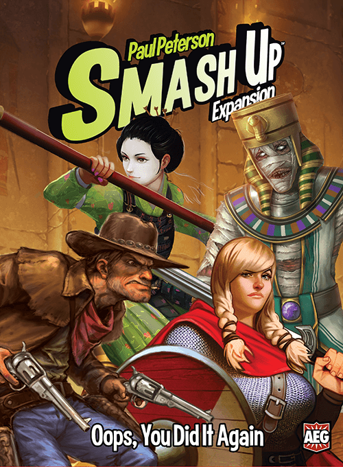Smash Up: Oops, You Did It Again é um jogo autônomo para dois jogadores que também pode ser usado como uma expansão para outros títulos Smash Up. As quatro facções a serem incluídas neste conjunto são vikings, vaqueiros, samurais e egípcios. Dependência de Idioma Extenso. Precisa de uma tradução quase completa para ser jogado. Domínios Jogos Expert Mecânicas Controle/Influência de Área, Gestão de Mão, Jogadores com Diferentes Habilidades, Toma essa Categorias Jogo de Cartas Temas