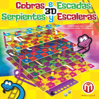 Lembrando que o jogo de tabuleiro Cobras e Escadas 3D é um jogo pensado para pessoas com idade a partir de 5 anos e é indicado para 2 a 6 jogadores, além de ter sessões de jogo que duram em média 20 minutos.