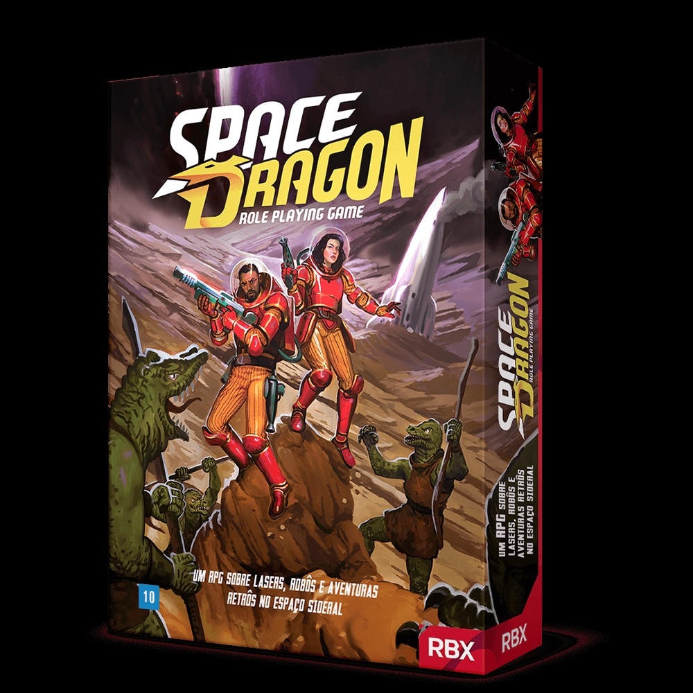 Space Dragon traz as mais clássicas histórias de aventura e exploração espacial típicas do gênero pulp, diretamente para a sua mesa. Homens do espaço lutando contra a escória do universo, cientistas malucos e seus aparatos, gatunos vigaristas, mutantes estranhos, super humanos com inacreditáveis poderes mentais, robôs inteligentes e muitas outras coisas incríveis aguardam você e seus amigos em viagens interplanetárias dignas de Buck Rogers e Flash Gordon. Todos os tipos de aventuras no espaço sideral podem ser roladas com Space Dragon, de vilões tecnologicamente superiores a mundos com seres pré-históricos ou toda sorte de alienígenas sanguinários. Criado sobre as regras simples do Old Dragon, e um sistema com tudo que você precisa para jogar, incluindo raças, classes, poderes mentais, equipamentos, implantes robóticos, espaçonaves, criaturas e regras para os diversos tipos de situações em aventuras do gênero. Vista seu traje espacial, pegue seus aparatos e prepare-se para perseguições emocionantes, tiroteios caóticos com pistolas lasers, viagens fantásticas e toda a ação e diversão que a ficção científica pulp pode oferecer! LUDOSTORE R$ 93,54 (no boleto) Comprar Editora Nacional Buró Editora Status Nacional Lançado (Dezembro/2020) Sistema Space Dragon, d20 System Dependência de Idioma Não jogável em outra língua Domínios RPG Mecânicas Atuação, Jogadores com Diferentes Habilidades, Narração de Histórias, Rolagem de Dados, RPG Categorias Temas Ficção Científica, Literatura