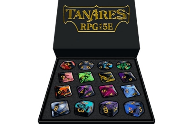 Conjunto de dados para o RPG Tanares 5ª edição. Editora Nacional Dragori Games Sistema Dungeons & Dragons (5th Edition) Dependência de Idioma Não jogável em outra língua Domínios RPG Mecânicas RPG, Narração de Histórias, Papel e Caneta, Rolagem de Dados Categorias Expansão ou Suplemento Temas Fantasia, Literatura, Medieval