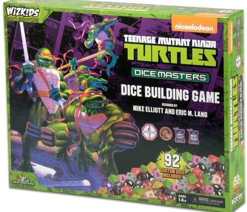 Teenage Mutant Ninja Turtles Dice Masters é um jogo de construção de dados padronizada após Quarriors! que apresenta dados personalizados representando vários personagens do universo das Tartarugas Ninjas. Como todos os conjuntos de Dice Masters, TMNT é vendido como um conjunto que dá todos os dados e cartas que você precisa para jogar. Este é o primeiro Dice Masters que é vendido como um conjunto completo, sem a possibilidade de expandi-lo com boosters. Dependência de Idioma Extenso. Precisa de uma tradução quase completa para ser jogado. Domínios Jogos Expert Mecânicas Construção de Baralho/Peças, Jogadores com Diferentes Habilidades, Rolagem de Dados Categorias Colecionável, Jogo de Dados Temas Luta / Artes Marciais, Quadrinhos
