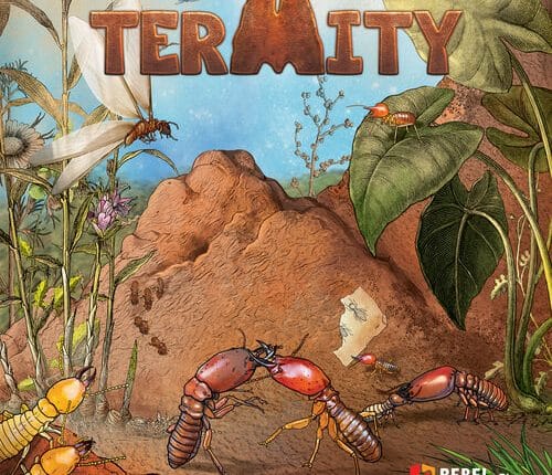 Termites é um jogo de estratégia sobre a luta agarrada de insetos incansáveis para 2 a 4 jogadores. À primeira vista, a vida continua lentamente nas planícies africanas queimadas pelo sol. Ou assim parece. Na moita de capim, enxames de cupins lutam batalhas implacáveis. É o instinto territorial que os faz lutar perpetuamente. Há uma evidência tangível de sua ferocidade – montes enormes que contêm milhões de guerreiros insetos sempre prontos para defender a sua fortaleza. Prove seu artifício e capacidade de pensamento estratégico lutando pela sobrevivência com os seus adversários, conquistando montes e expandindo para novos territórios. O objetivo do jogo é tomar o controle sobre montes inimigos e montes neutros e defender seus próprios ninhos. O jogador que tem poder sobre montes com a maior quantidade de pontos no final do jogo torna-se o vencedor. Dependência de Idioma Nenhuma Domínios Jogos Família Mecânicas Gestão de Mão, Colocação de Peças, Jogadores com Diferentes Habilidades, Marcadores e Hexágonos Categorias Temas Animais, Luta / Artes Marciais