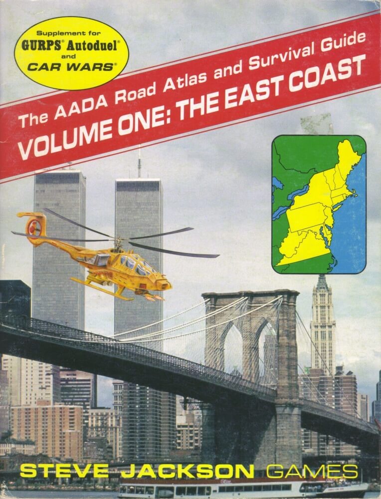 A editora responsável pela distribuição do The AADA Road Atlas and Survival Guide, Volume One: The East Coast (1987) foi a Steve Jackson Games no ano de 1987.