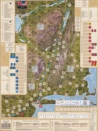 The Campaigns of 1777 é um wargame para dois jogadores, no qual você comanda os Patriotas ou os britânicos nas colônias do norte durante 1777, o ano crítico na Guerra pela Independência Americana. O tom dos britânicos foi estabelecido por líderes como Howe, Burgoyne, Cornwallis e Clinton, enquanto os Patriotas marcharam com líderes como Washington, Greene, Arnold, Schuyler e Gates. As Batalhas travadas nas colônias do norte incluem os cercos do Forte Ticonderoga e Forte Stanwix, as batalhas de Brandywine, Germantown e Saratoga, bem como a rendição do exército de Burgoyne em Saratoga. O objetivo do jogador britânico é controlar certos espaços para cumprir suas condições de vitória. O objetivo do jogador Patriota é simplesmente impedir a vitória britânica. Uma polegada no mapa representa cerca de 20 quilômetros. Cada Ponto de Força (SP) representa um regimento de baixa velocidade de aproximadamente 300 a 500 homens. Cada turno do jogo representa uma a três semanas. Componentes: Um mapa de 22 “x 34” e 228 contadores Revista: Strategy & Tactics #316 Dependência de Idioma Nenhuma Domínios Jogos Expert Mecânicas Marcadores e Hexágonos, Movimento Ponto-a-Ponto, Simulação Categorias Jogo de Guerra Temas Guerra