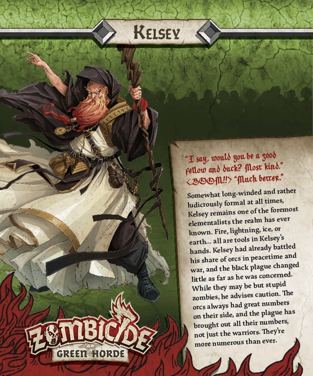 A descrição do Zombicide Green Horde – Kelsey oficial é: