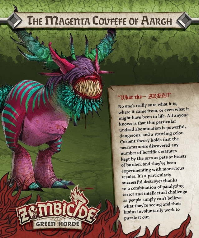 A descrição do Zombicide Green Horde – The Magenta Covfefe of Aargh oficial é: